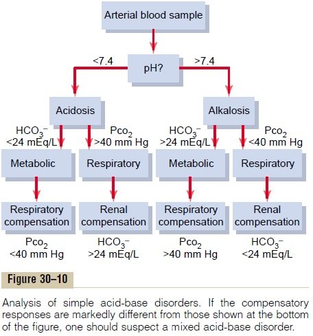 Imbalances in acid-base homeostasis can result in four primary disorders: metabolic acidosis, respiratory acidosis, metabolic alkalosis, and respiratory alkalosis.