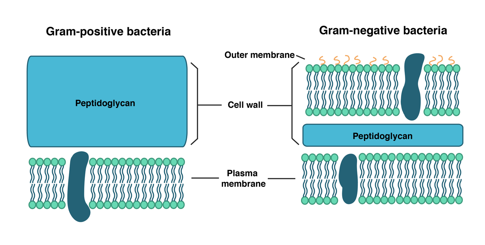 | Peptidoglycan | Thicker; many layers (30-40 layers) | Thinner, single layer |