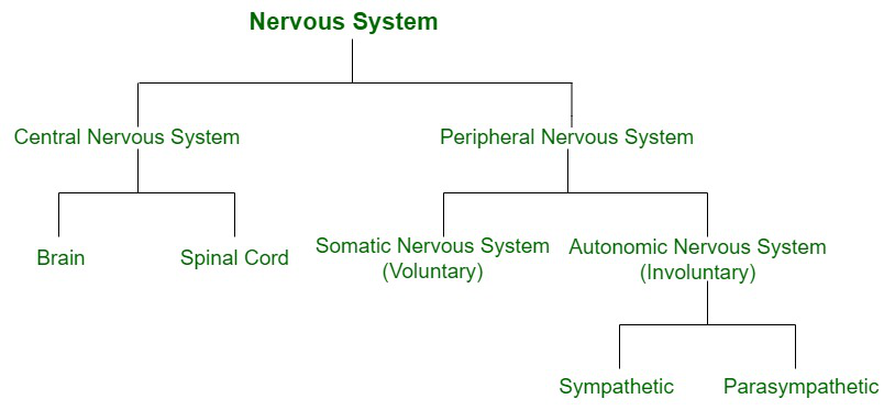The nervous system includes both the Central nervous system and Peripheral nervous system. The Central nervous system is made up of the brain and spinal cord and The Peripheral nervous system is made up of the Somatic and the Autonomic nervous systems.