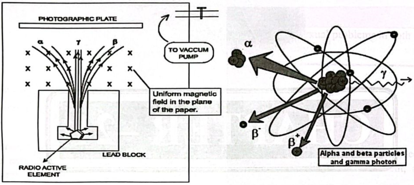 There are mainly three types of particles or waves that may shoot out of a radioactive nucleus.