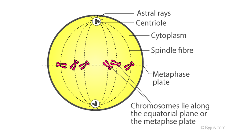 • Chromosomes arrange themselves in the centre or on the equator of spindle.