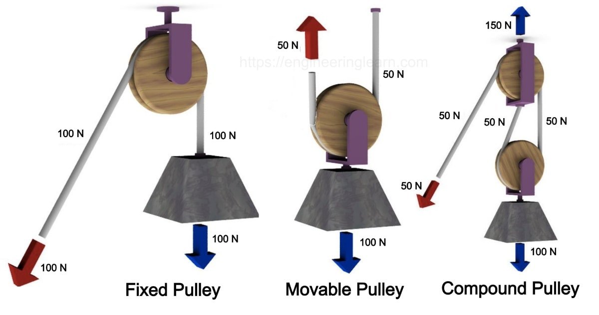 - Pulleys are used to lift heavy weights; to open windows move draperies; to raise heavy operating room lamps, and other apparatus in laboratory.