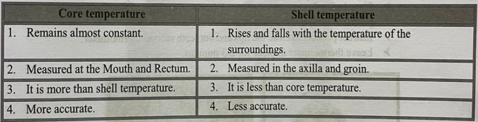 The temperature of the deep tissues of the body is called core temperature. It remains very constant, within ±1°F (±0.6°C) except when a person develops a febrile illness.
