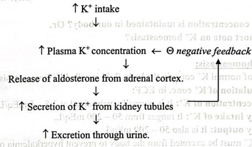 ➤ Daily intake of K⁺: It ranges from 50-200 mEq/L.