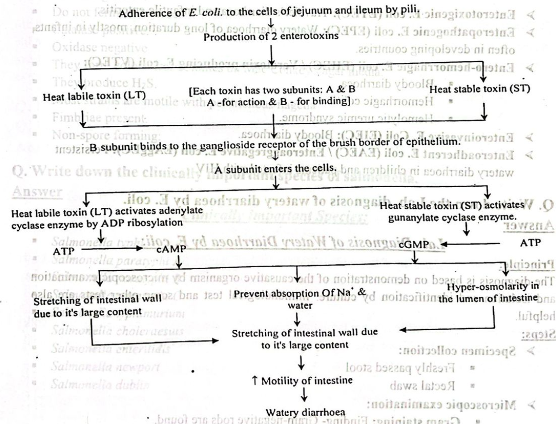 Pathogenesis/Mechanism of Diarrhoea by E. coli: (Enterotoxin mediated)