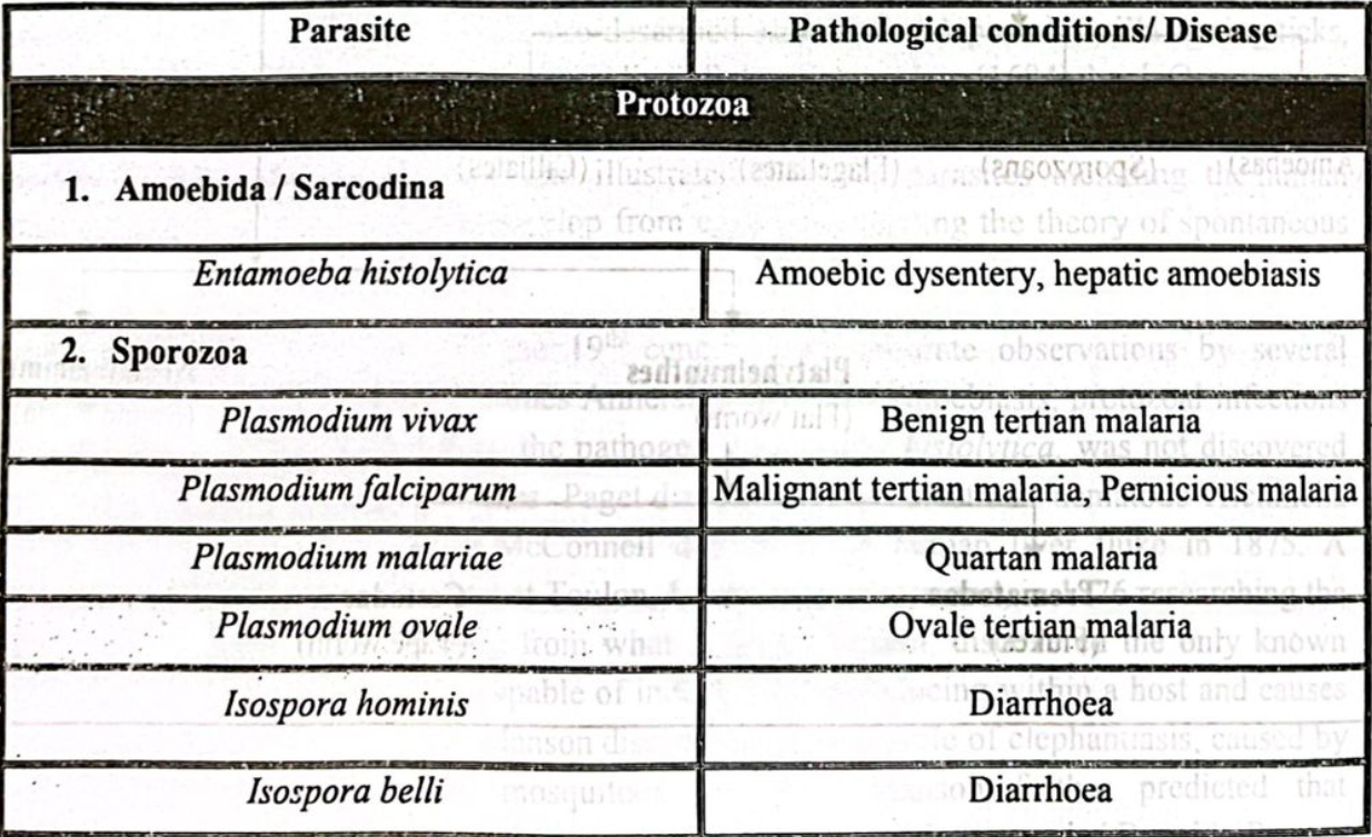 | Entamoeba histolytica | House fly | Amoebiasis |
