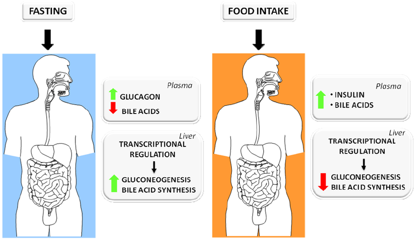 Several hours after eating, insulin levels decrease, and the body transitions into the “fasted state,” characterized by the mobilization of stored energy to maintain bodily functions.