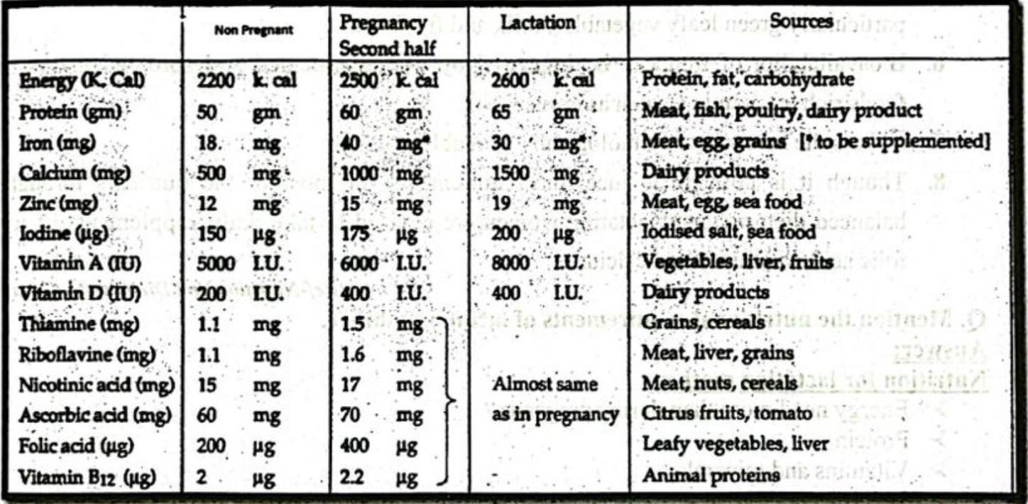 Ways to meet nutritional requirement during pregnancy and lactation: