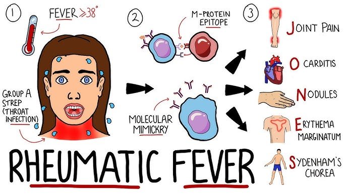 Rheumatic fever is an inflammatory disease that can develop as a complication of inadequately treated strep throat or scarlet fever. Strep throat and scarlet fever are caused by an infection with streptococcus bacteria.
